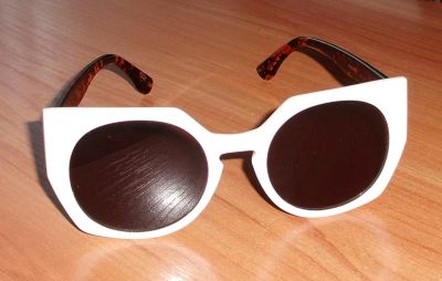 Б/у, состояние отличное. Женские солнцезащитные очки. Замеры: ширина между дужками - 130 мм, длина дужек - 135 мм, высота и ширина линзы - 3.5 и 5 см.