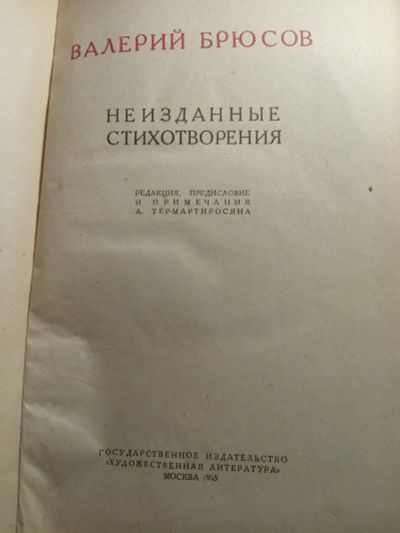 Валерий Брюсов Неизданные стихотворения 1935